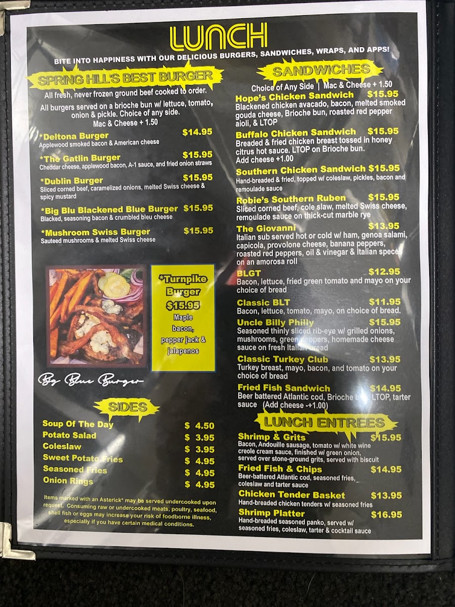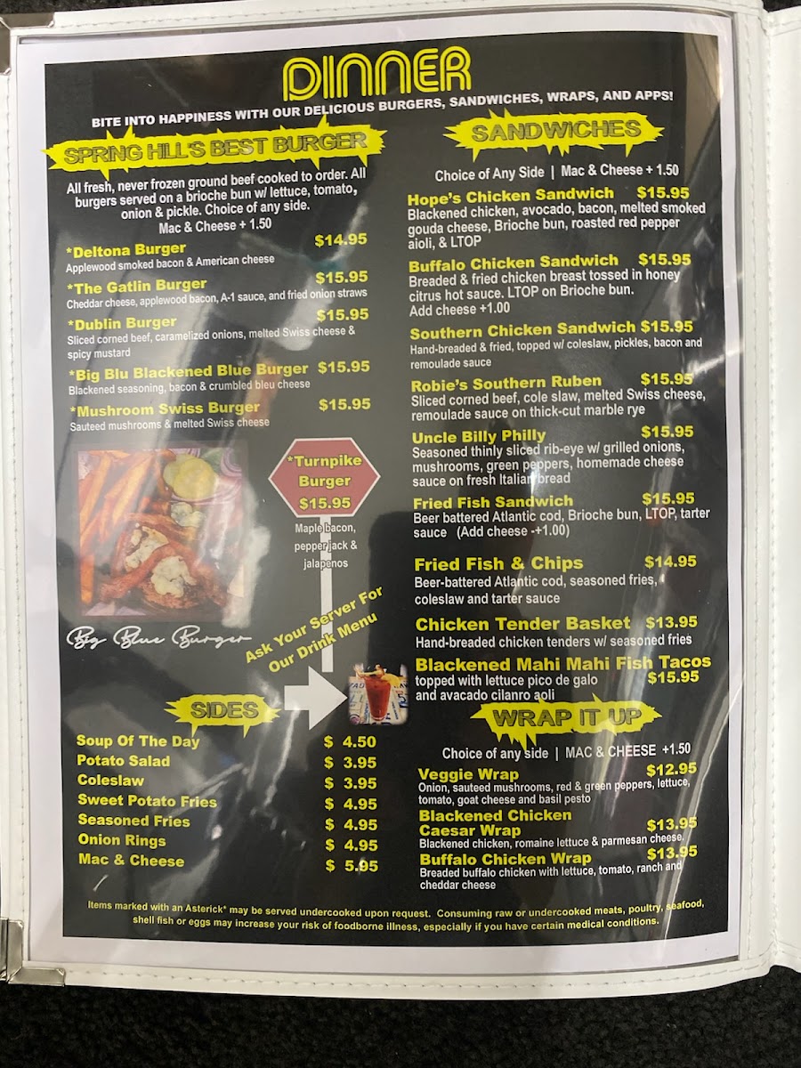 At Turnpike’s Menu, you’ll find a great variety of flavors, from comforting classics to bold new twists. Whether you’re in the mood for a hearty breakfast to start your day or a delicious dinner to unwind, this menu has something to satisfy every craving. You can dive into fresh salads, enjoy a juicy burger, or savor the perfectly seasoned seafood dishes. The kitchen takes pride in using fresh ingredients, so each dish is full of flavor. From the first bite to the last, you’ll experience the perfect blend of taste and texture. Don't forget to check out the sides and sweet treats to complete your meal-there’s always something new to try.
